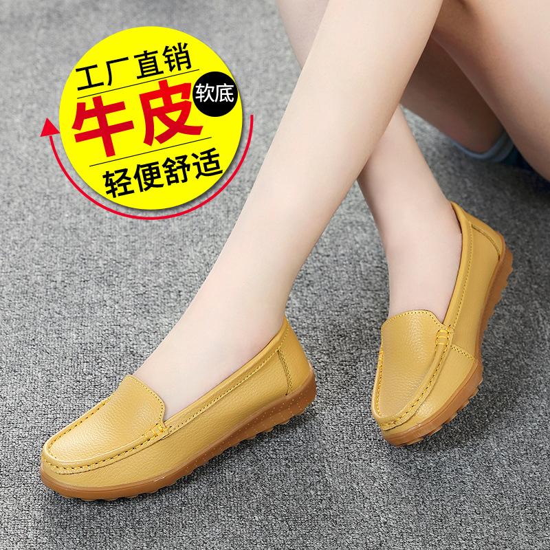 Leather shoes soft-soled women's shoes women's casual flats beef tendon sole one-pedal single shoes
