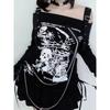 VAYLA Y2K Woman Clothing arcane stitch T-shirts Goth Punk Off Shoulder Long Sleeve Casual Vintage Sexy Streetwear Skulls tops