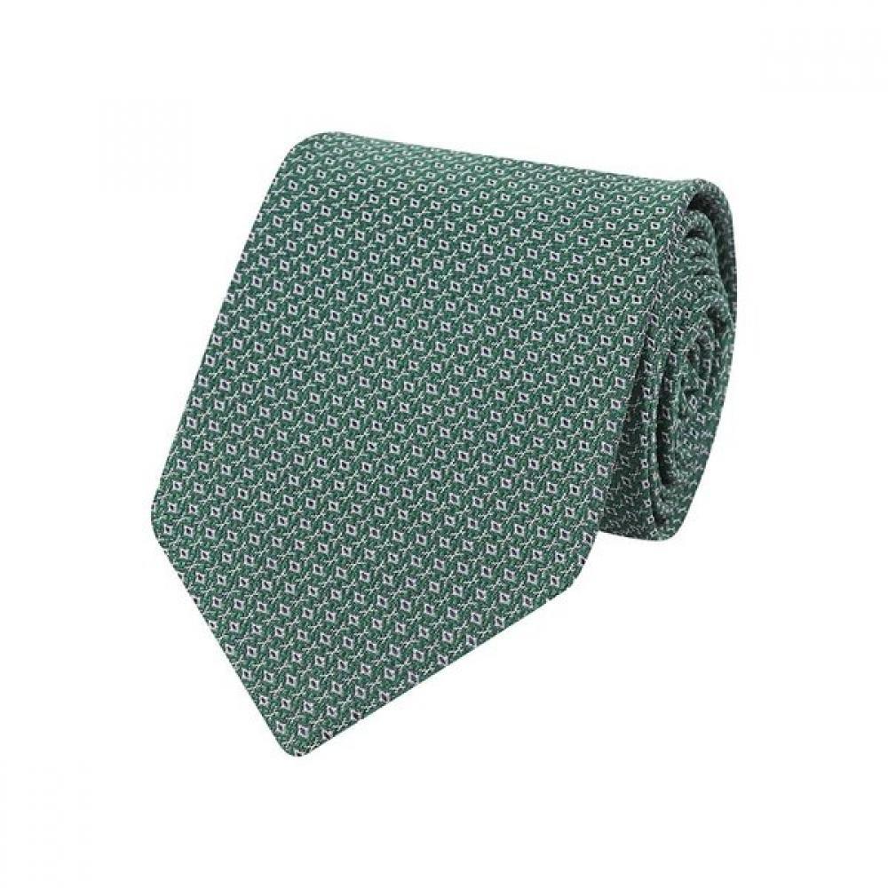 The Men's Geometric Pattern All-Over Tie (Model Number: DMG1ACF1304E1) features an elegant green color adorned with intricate geometric patterns. Made of silk, it provides a soft touch and subtle luster. Crafted with a high-density jacquard weaving technique, it offers excellent volume and resilience. The combination of muted green, white, and navy in a fine geometric pattern is designed to provide a natural accent to your suit attire without being overly flashy. Optimal for creating an intelligent and tidy impression in both sports and formal settings.