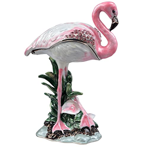 FJ FENGZHIJIE Flamingo Decorative Goreng Enamel Crystal Bird Trinket Box Jewelry Box Flamingo Gift