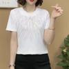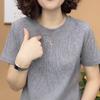Middle-aged Short-sleeved T-shirt Women's Summer Western Style Solid Color Round Neck Casual