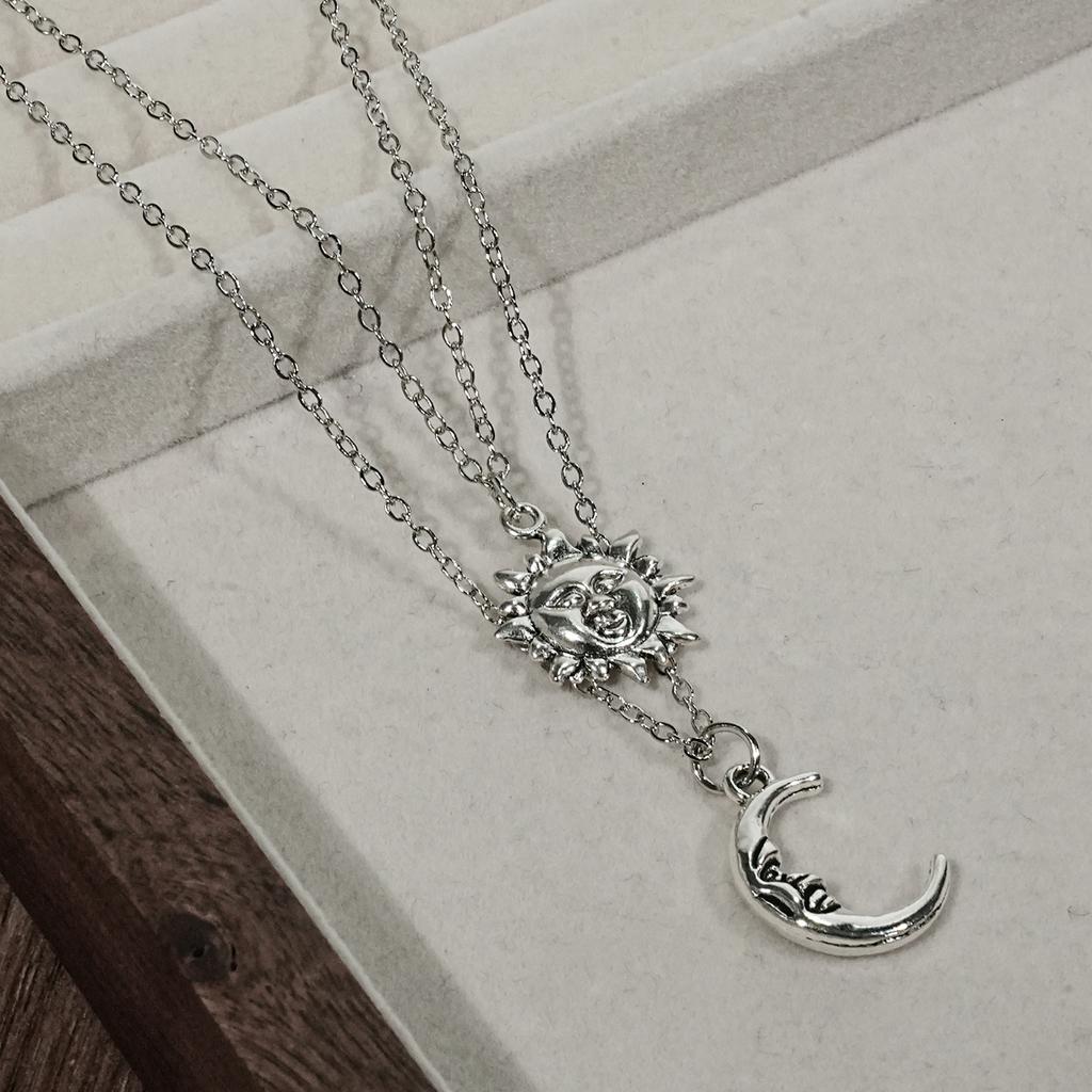 Y2K personalized creative Ramadan sun and moon necklace double-layer necklace set, amulet necklace, holiday gift