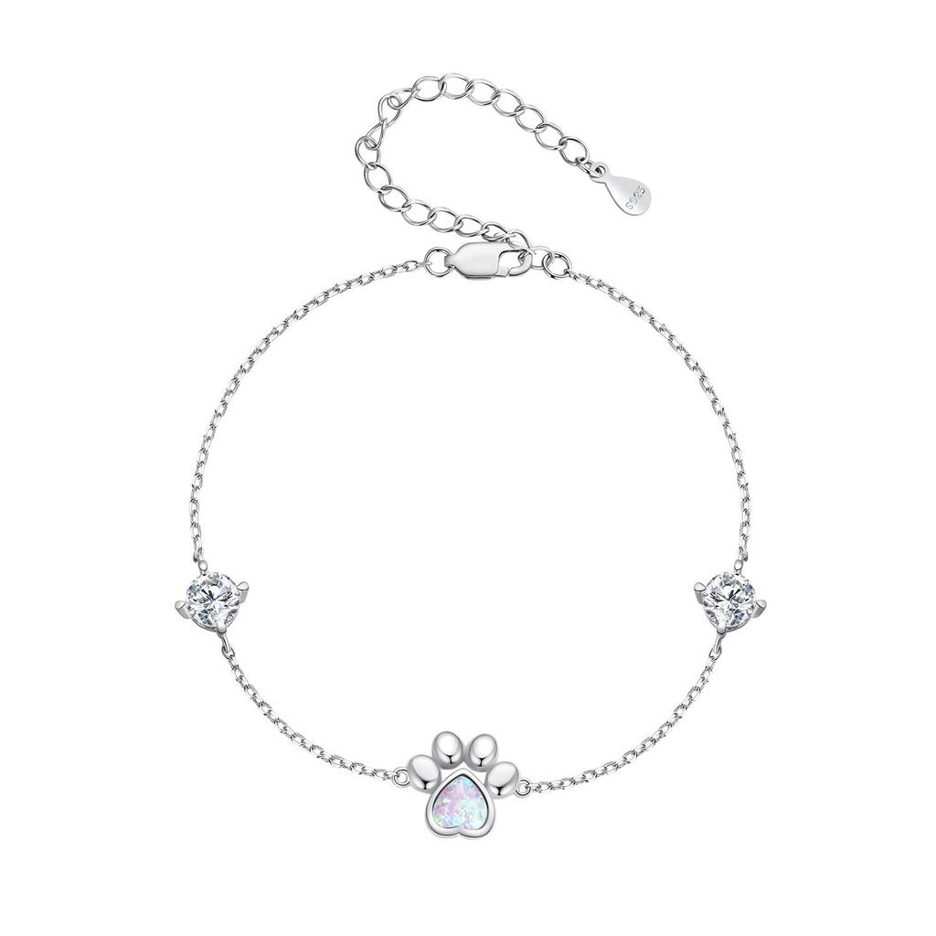 WOSTU 925 Silver Cut White Opal Cat Dog Paw Charm Bracelet For Women Lovely Girl Animal Chain Links Fine Jewelry Gift