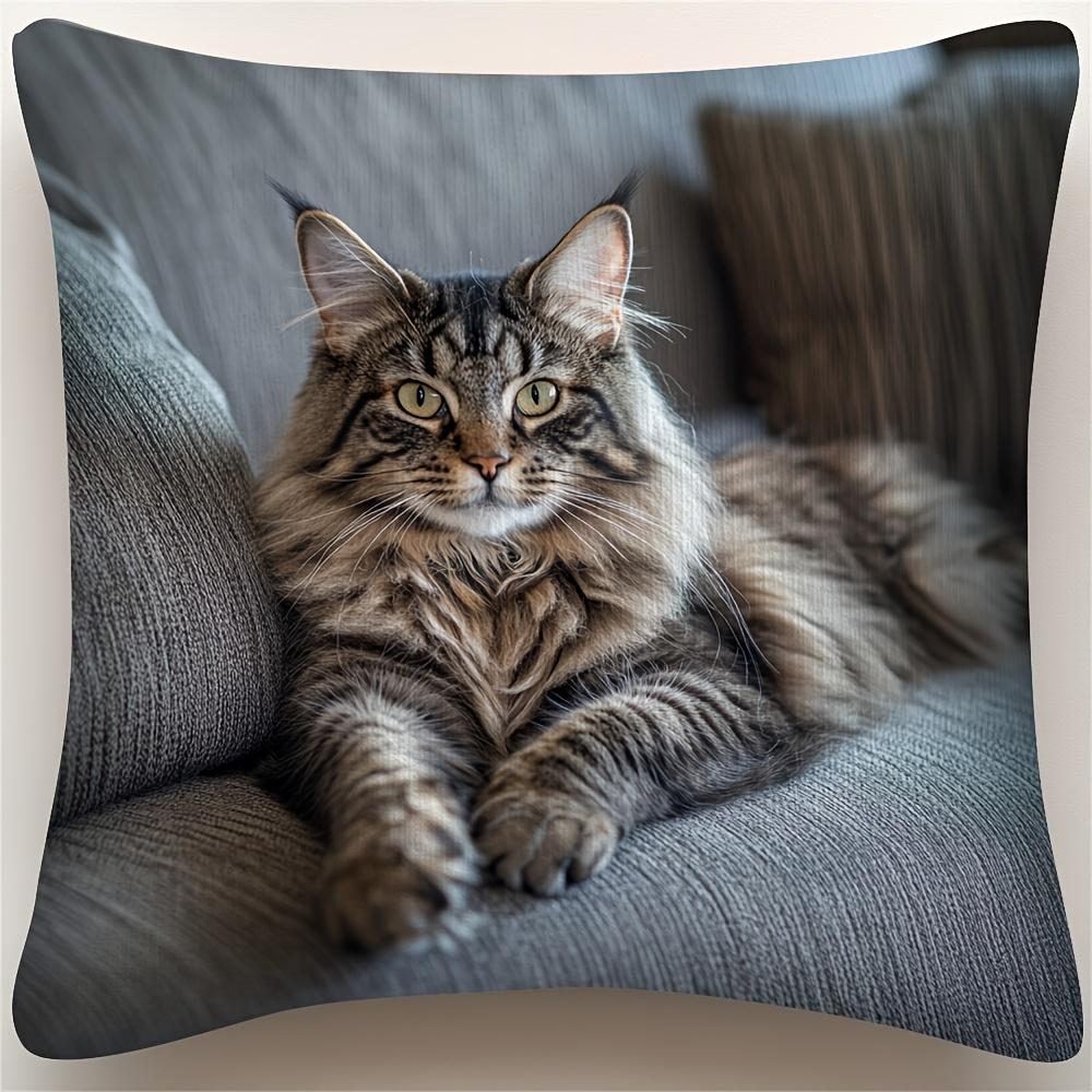 Vintage Maine Coon Cat 45x45cm Pillow Cover 100% Polyester with Invisible Zipper Pillowcase Decorative Cushion Case Home Decor