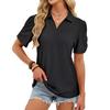 European and American cross-border foreign trade women's summer new V-neck T-shirt puff sleeve loose POLO shirt top