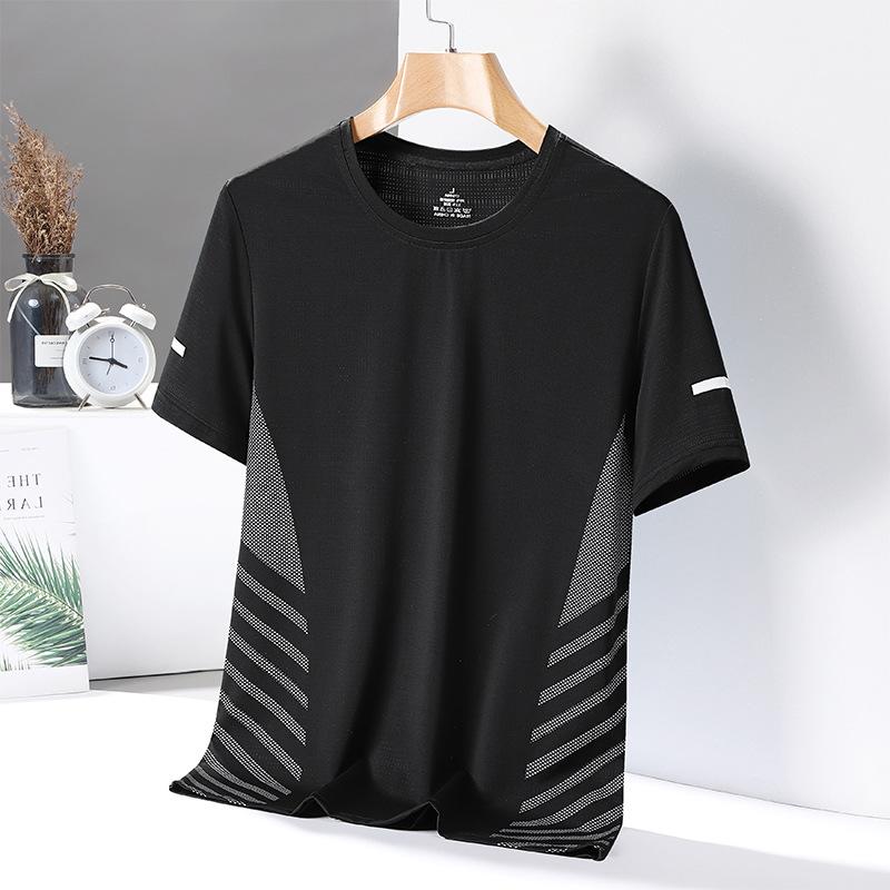 Tricou cu mânecă scurtă, rece și respirabil, pentru bărbați, de vară, din mătase de gheață, cu gât rotund, tricou casual