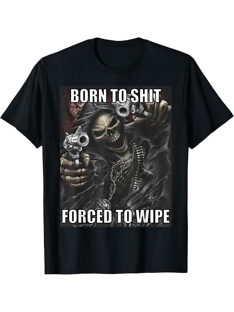 Born To Shit Forced To Wipe Funny Evil Skeleton Meme Printed TShirt Funny Design Women Comfortable Casual Summer Clothing