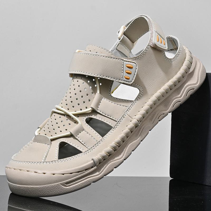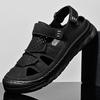 Summer Men's Leather Sandals Handmade Outdoor Ventilated Beach Slides Non-Slip Sole Casual Shoes