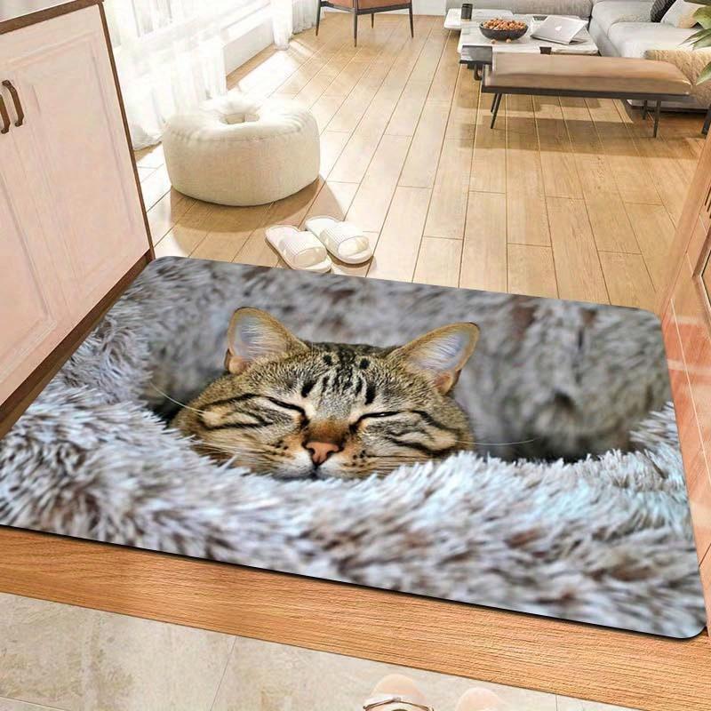 1Pcs Cozy Cat Pattern Floor Mat Modern Kitchen Polyester Rug Non-Slip Colorful Indoor Carpet, For Home Bathroom Bedroom Living Room Decor