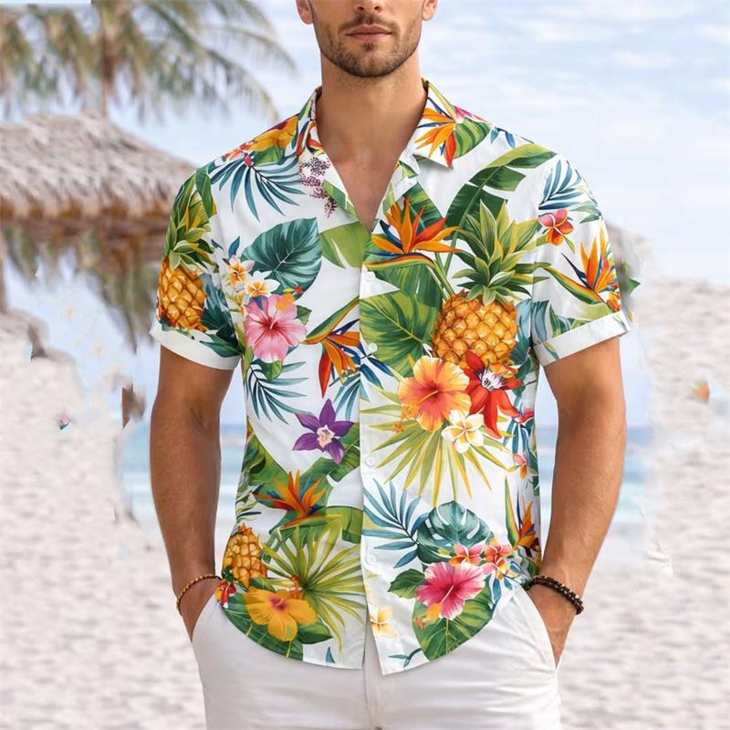 2026 New Fashion Pineapple Print Shirt Men's Summer Shirts Short-Sleeve Shirts for Vacation and Travel