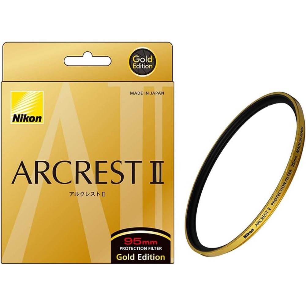 The Nikon ARCREST II Protection Filter Gold Edition is a high-performance protective filter that minimizes the impact on image quality while preserving the lens's original performance. Made from high-quality optical glass, it employs Nikon's unique mounting technology, the 'Flat Plane System,' to maintain stable flatness. The ultra-low reflection AR coating maintains color balance and prevents performance degradation due to ghosting and flaring effects. Furthermore, the static electricity-resistant coating reduces adhesion of dust and dirt, maintaining high image quality even in high-resolution cameras.