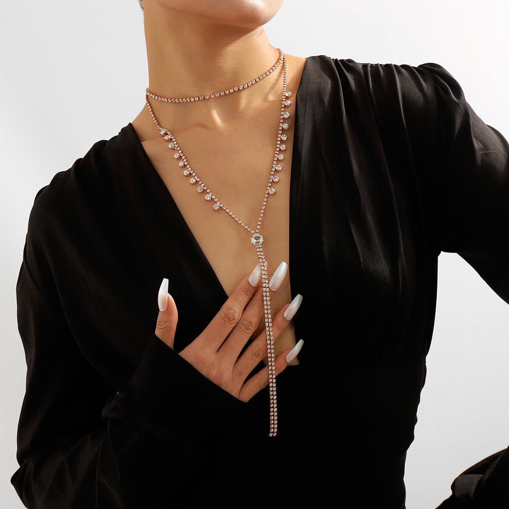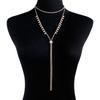 Women European Minimalist Y‑Shaped Long Choker Full Rhinestone Chain Geometric Necklace Jewelry