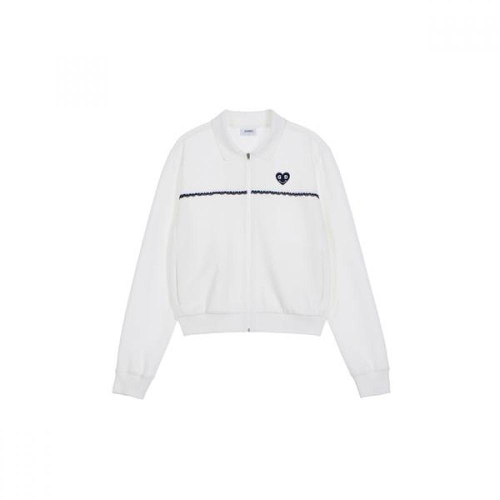 The Smile Heart Lace Collar Zip-Up is a zip-up jacket featuring a soft touch, made with fleece blended material that provides comfort and stable activity. The lace detail added along the center of the chest adds a feminine point to the simple design, while its appropriate length and clean silhouette make it suitable not only for rounds but also for daily style.