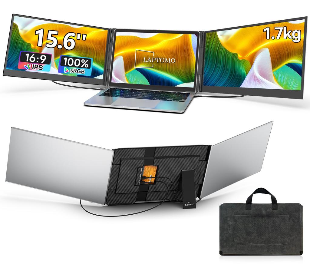 [Three-Screen Expansion for Greater Work Efficiency] The Laptomo P7 is a triple monitor that adds two external displays to your laptop. Simultaneously display multiple apps, documents, and browsers, eliminating the need to switch screens. Increase productivity in a variety of business scenarios, including presentations, design, stock trading, programming, and video editing. Ideal for teleworking and working from home.