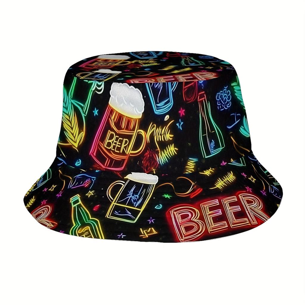 One Piece of Neon Wine Glasses And a Unisex All-Over Print Casual Fisherman Hat Perfect for Outdoor Vacations Birthday Presents