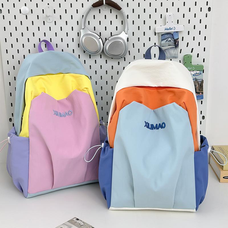 Casual backpack junior high school female student schoolbag ins large capacity couple travel backpack high value contrasting color backpack