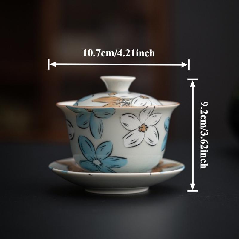 Ice Grey Underglaze Tureen Sancai Hand-painted Floral Tea Bowl Japanese Cherry Blossom Ceramic Gaiwan Chinese Kung Fu Teaware