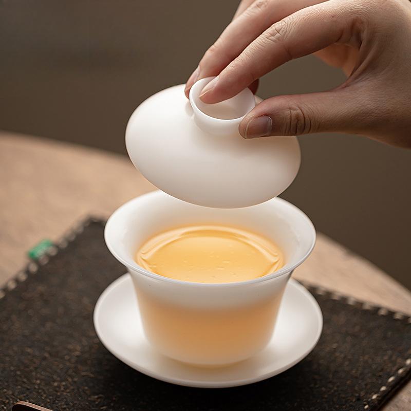 150ml Burnt Mutton Fat Jade White Porcelain Gaiwan Japanese Tea Tureen Tea Cover Bowl Tea Ceremony Supplies Teaware Gift Box