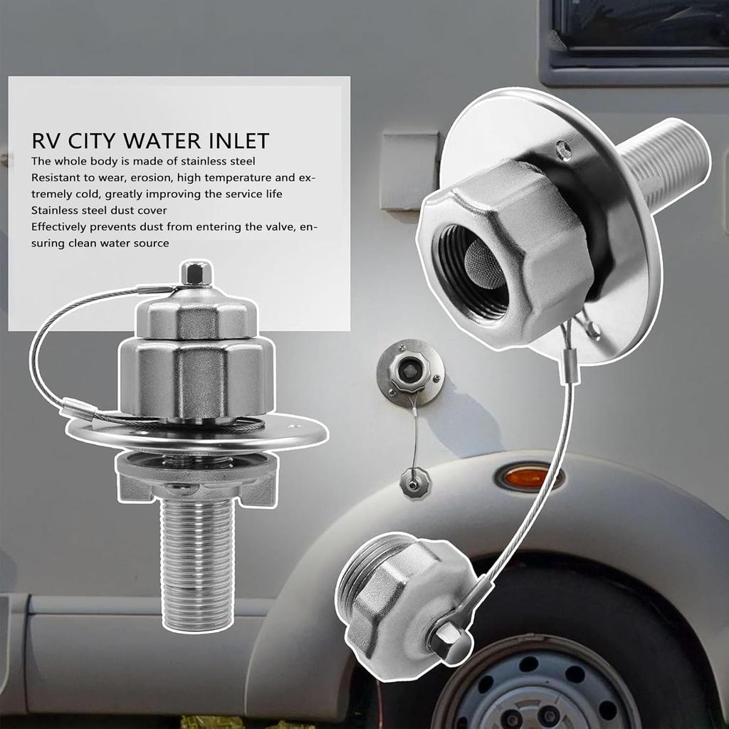 Metal RV City Water Inlet, RV Water Inlet Connection with Check Valve, RV City Water Fill Inlet Replacement Flange Fresh Water Inlet for Motorhome