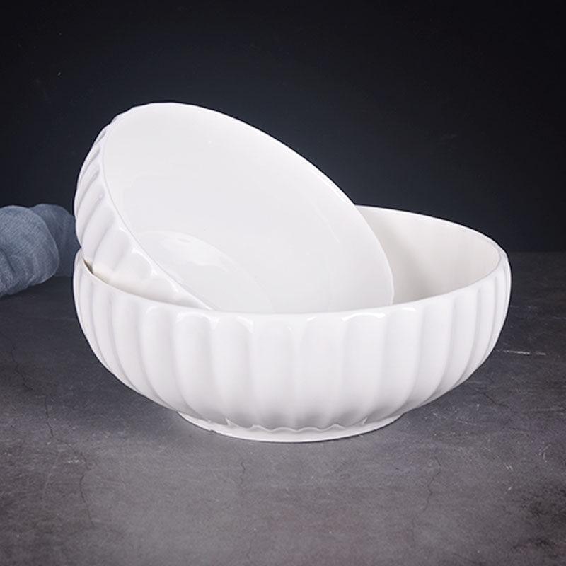 Large White Ceramic Bowl - Creative Pumpkin Design for Soup, Noodles, Kimchi, Ramen, and More. Ideal for Home Tableware in Chinese Style.