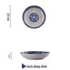 Set de 4 farfurii ceramice japoneze alb-albastru, de 8 inch: Include farfurie adâncă, farfurie pentru orez și farfurie pentru friptură.
