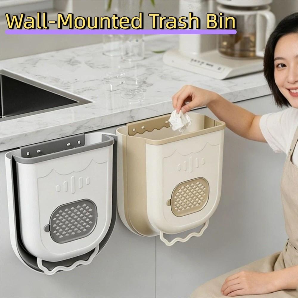 Hands-Free Wall-Mounted Trash Bin Space Saving Foldable Storage Bin No-Bending Trash Can Bathroom