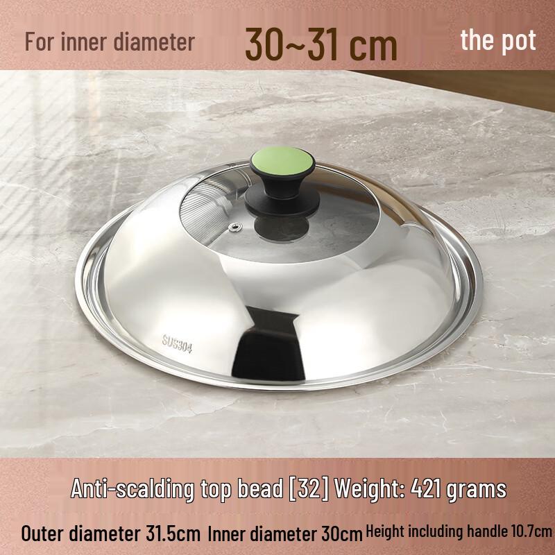 32cm Universal Stainless Steel Wok Lid with Anti-scald Handle