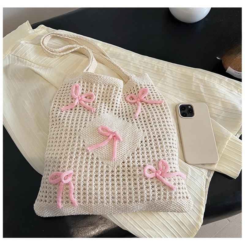 Ladies Beach Bags Vintage Hollow Bow Design Woven Shoulder Handbag Knitting Large Capacity Handbags Summer Travel Shopper Tote