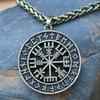 Pandantiv Busolă cu Rune Odin Stil Viking Colier Metalic Bijuterii