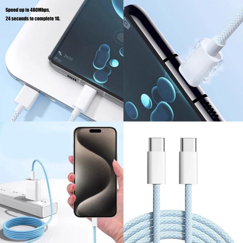 60W Fast Charging Cable Line USB C To USB C Braided Cord High Speed Data Sync Wire Suitable For S23/S22/S21+ Smartphone