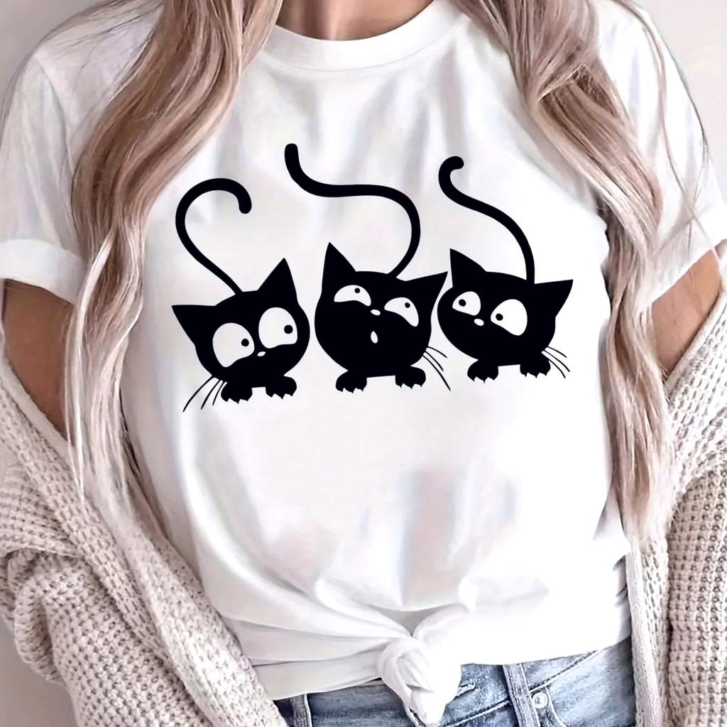 Womens Cute Black Cat Prints Tshirt Summer Breathable Fashionable and Versatile Unisex Streetwear Comfortable Harajuku Tops