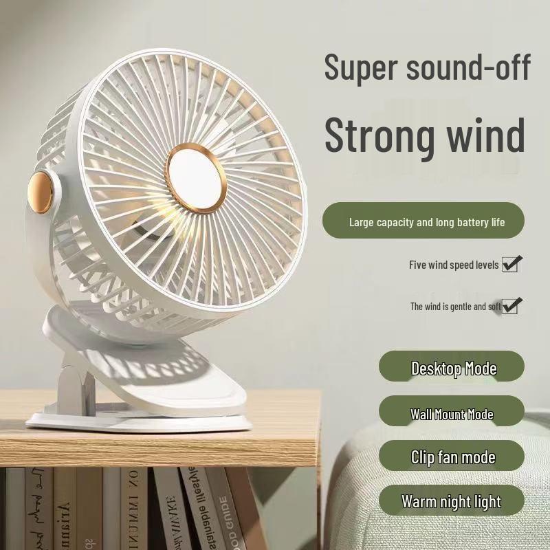 Portable Rechargeable Silent Night Light Mini Clip-on Fan for Desk, Dorm, Stroller, or Bed