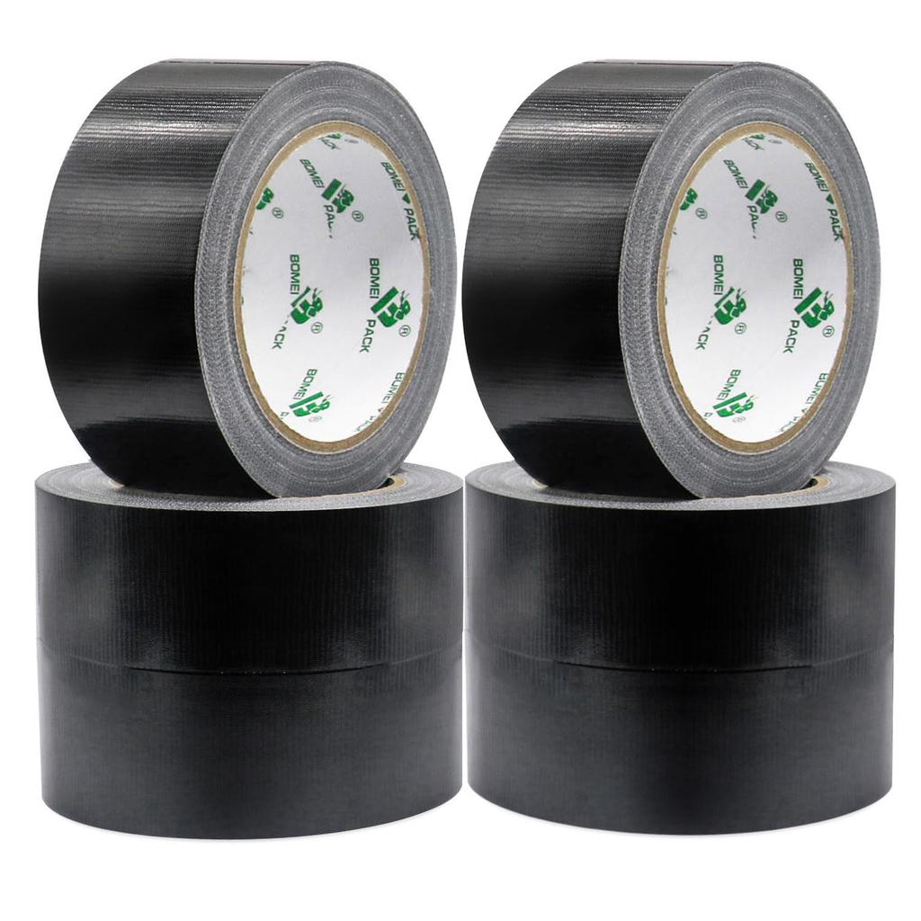 BOMEI PACK Cloth Tape, 6 Rolls, Black, 50mm x 25m, for Packaging, Adhesive Tape