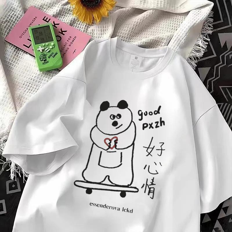 Summer Fashion Cartoon Cute Bear Print Casual T-Shirt Simple Short Sleeve Women Clothing Fashion Summer Streetwear Personality