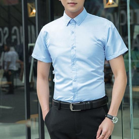 Men Summer Dress Shirt Slim Fit Short Sleeve Shirt Turn-Down Collar Button Up Shirt for Office Date Business Wear