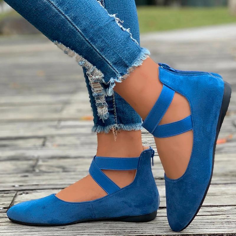 Women's Hollow Flock Flat Shoes Round Toe Shallow Thin Soft Sole Shoes Solid Color Casual Shoes Elegant Office Ladies Footwear