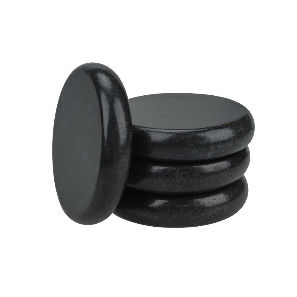 Windfulogo 4-Piece Hot Massage Stone Set - Natural Lava Basalt Spa Massage Warm Stones, Black (8x8cm)