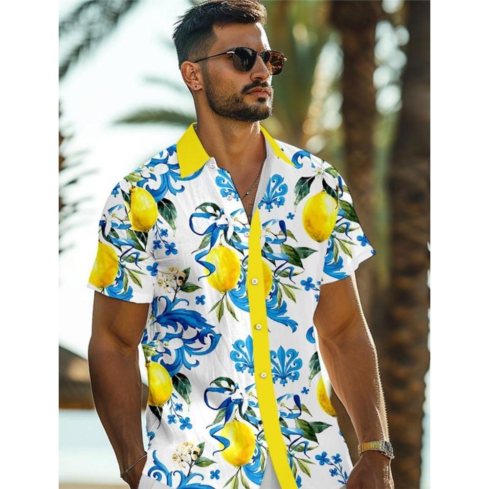Lemon Tropical Men's Resort Hawaiian 3D Printed Shirt Button Up Short Sleeve Tee Summer Beach Shirt Vacation Daily Wear
