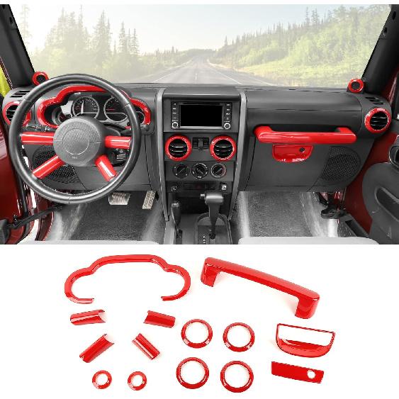 Carbon Fiber 14PCS Full Set Interior Trim Kit for 2007-2010 Jeep Wrangler JK JKU,Air Outlets A Pillar Speaker Glove Box Handle Dashboard Cover Trim