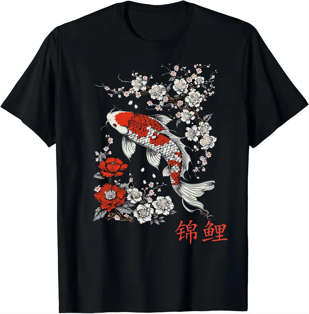 Unique Oriental Koi Sakura Design TShirt Graphic Tshirts Unisex Summer Soft Tops Shirts for Women Camisetas Ropa De Mujer
