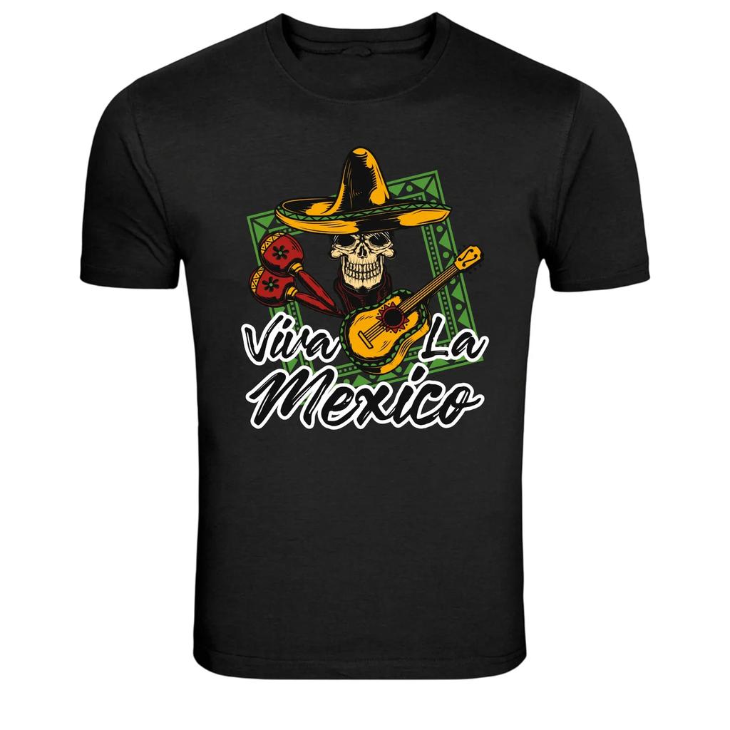 Viva La Mexico Skull Sombrero Mariachi Guitar Graphic T-Shirt