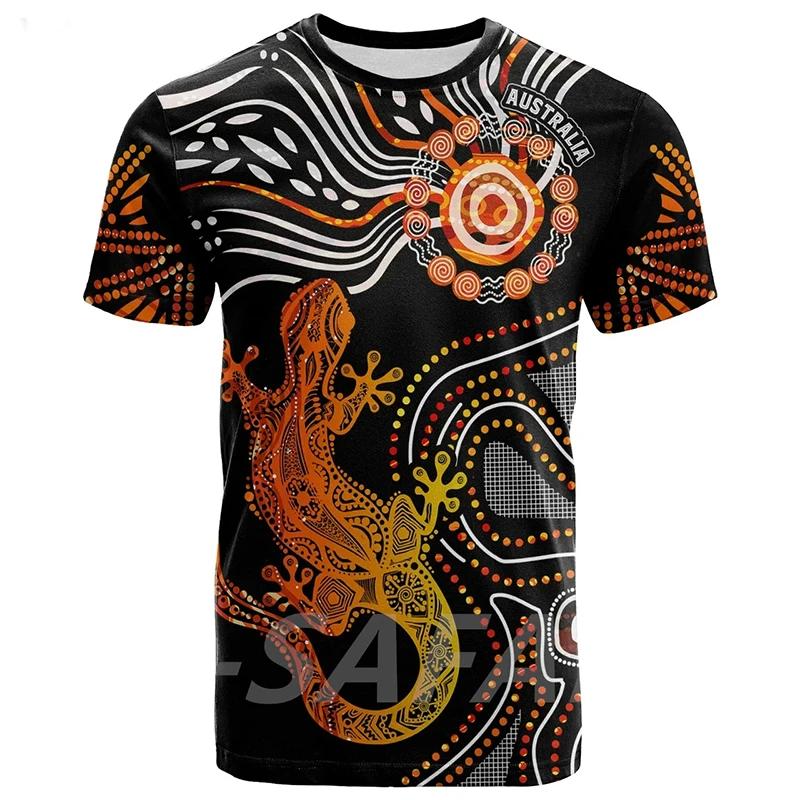 Australia Aboriginal Lizard Sunshine Pattern 3d Print Tshirts Street Casual O Neck T-Shirt Men Women Harajuku Short Sleeve Tops