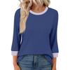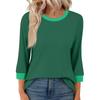Women's Fashion Casual Seven Sleeve T-Shirt Print Round Neck Top