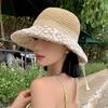 Summer New Seaside Sun Hat Breathable Sunscreen Hat Large Brim Bucket Hat Foldable French Lace Straw Hat