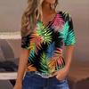 Women's T Shirt Print Button Short Sleeve Daily Weekend Fashion Basic V- Neck Regular Top