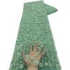 5 Yards African Sequins Bead Lace Fabric High Quality French Embroidery Nigerian Tulle Lace Fabric For Women Wedding Dress Craft