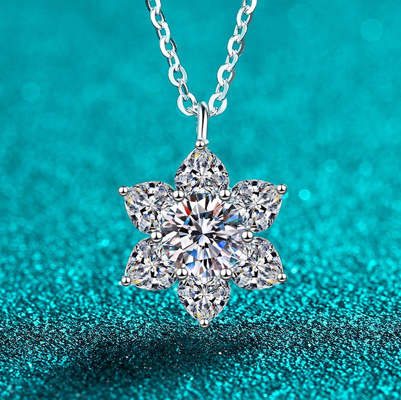 S925 Sterling Silver Moissanite Snowflake Pendant Necklace for Women - Cute Clavicle Chain