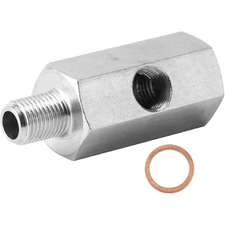 M10 Oil Pressure Sensor Tee Adapter,Male to Female1/8in to M10x1.0 with 1/8 NPT Side Port Stainless Steel Hose T Fittings Turbo Supply Feed Line