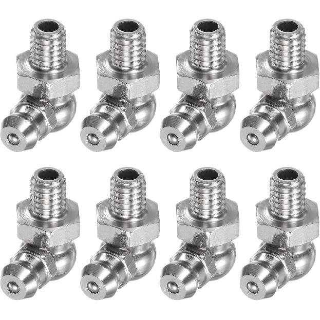 HARFINGTON 8pcs 201 Stainless Steel 90 Degree Grease Fitting M6x1mm Metric Thread Hydraulic Grease Nipple Accessories for Car