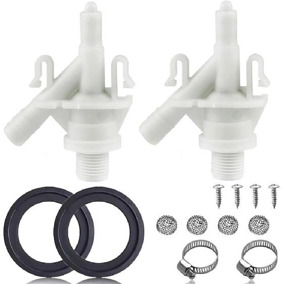 【Packaging Includes】 2x 385311641 Dometic toilet valve , 2x 385311658 rv toilet flush ball seal replacement , 2x hose clamp , 4x screws , 4x stainless steel mesh filters or fasteners to ensure hassle-free setup. Designed to offer reliable sealing, this kit is your go-to solution for toilet valve replacement